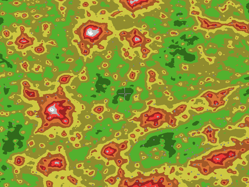 The central cross marks the location of the Kentucky Cutoff Overlook clear sky chart. Tiny crosses mark other charts. This map assumes an observer at sea level. A real observer should see a slightly darker sky.