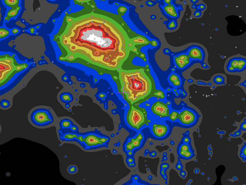 This map is a small exerpt (391mi east-to-west, by 346mi north-to-south) from the Light Pollution Atlas 2022 by David Lorenz. David recalculated the The World Atlas of the Artificial Night Sky Brightness with newer data.
