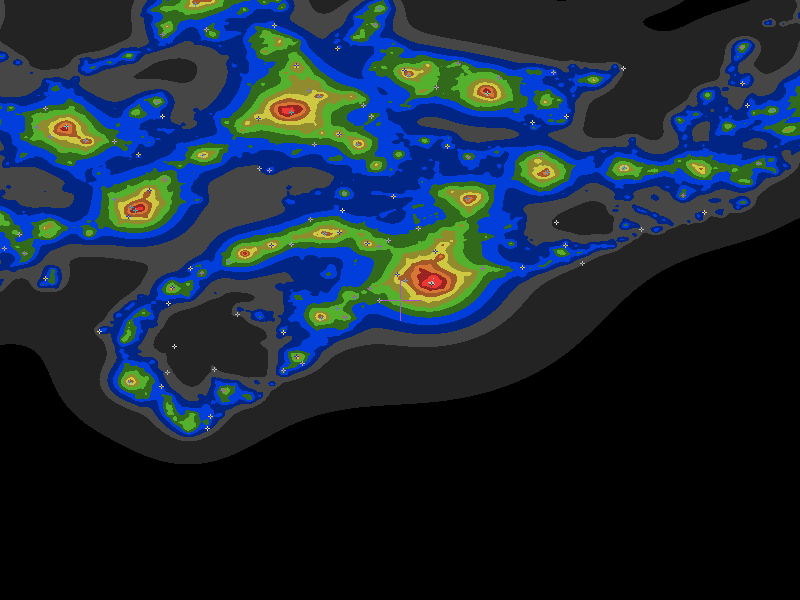 This map is a small exerpt (528Km east-to-west, by 556Km north-to-south) from the Light Pollution Atlas 2022 by David Lorenz. David recalculated the The World Atlas of the Artificial Night Sky Brightness with newer data.