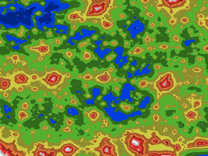 The central cross marks the location of the Monroe clear sky chart. Tiny crosses mark other charts. This map assumes an observer at sea level. A real observer should see a slightly darker sky.